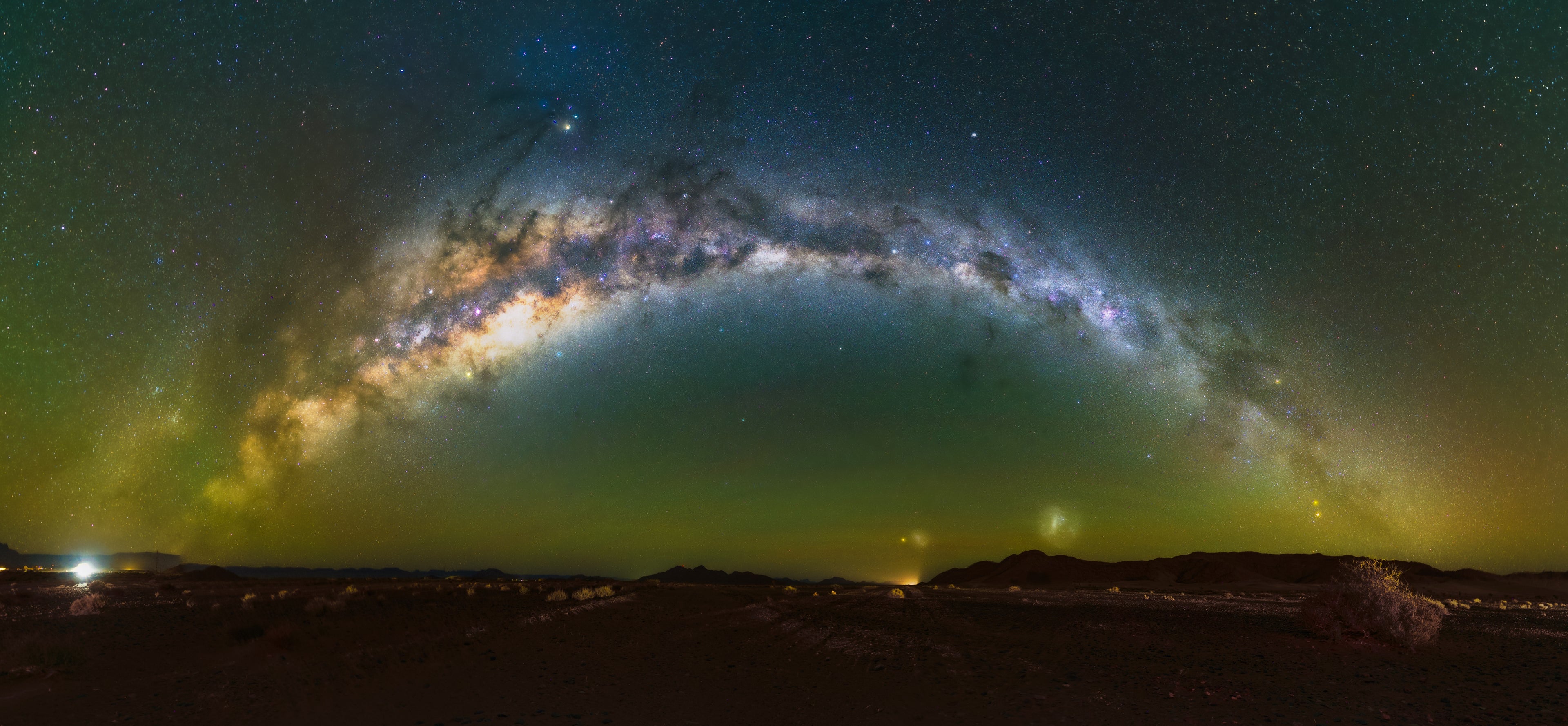 - Capture a series of overlapping vertical frames (with stacking for each), and stitch them together into a wide panoramic arc of the Milky Way.