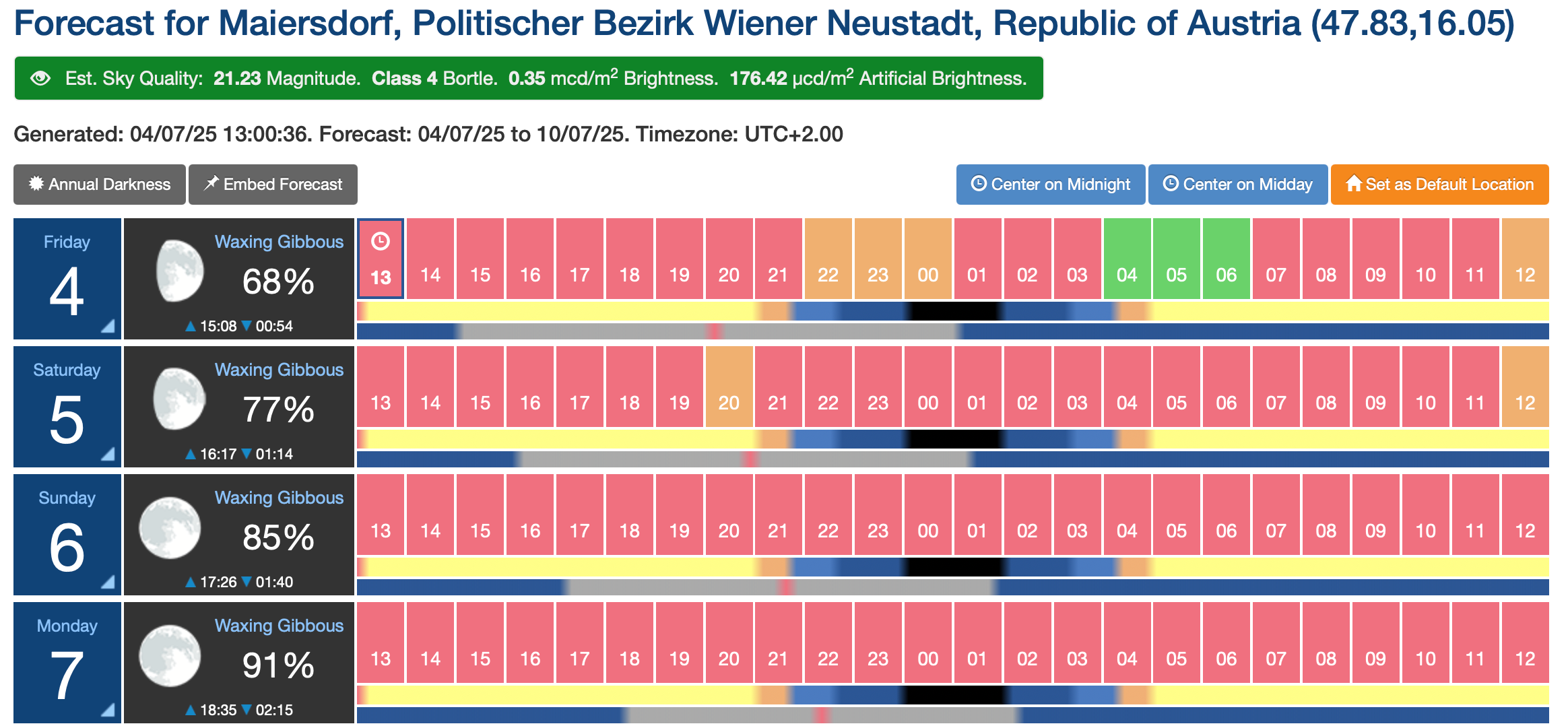 - Light Pollution Map (lightpollutionmap.info) – to find dark sky locations