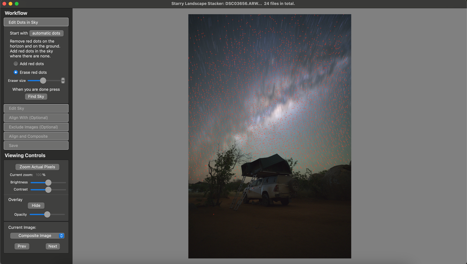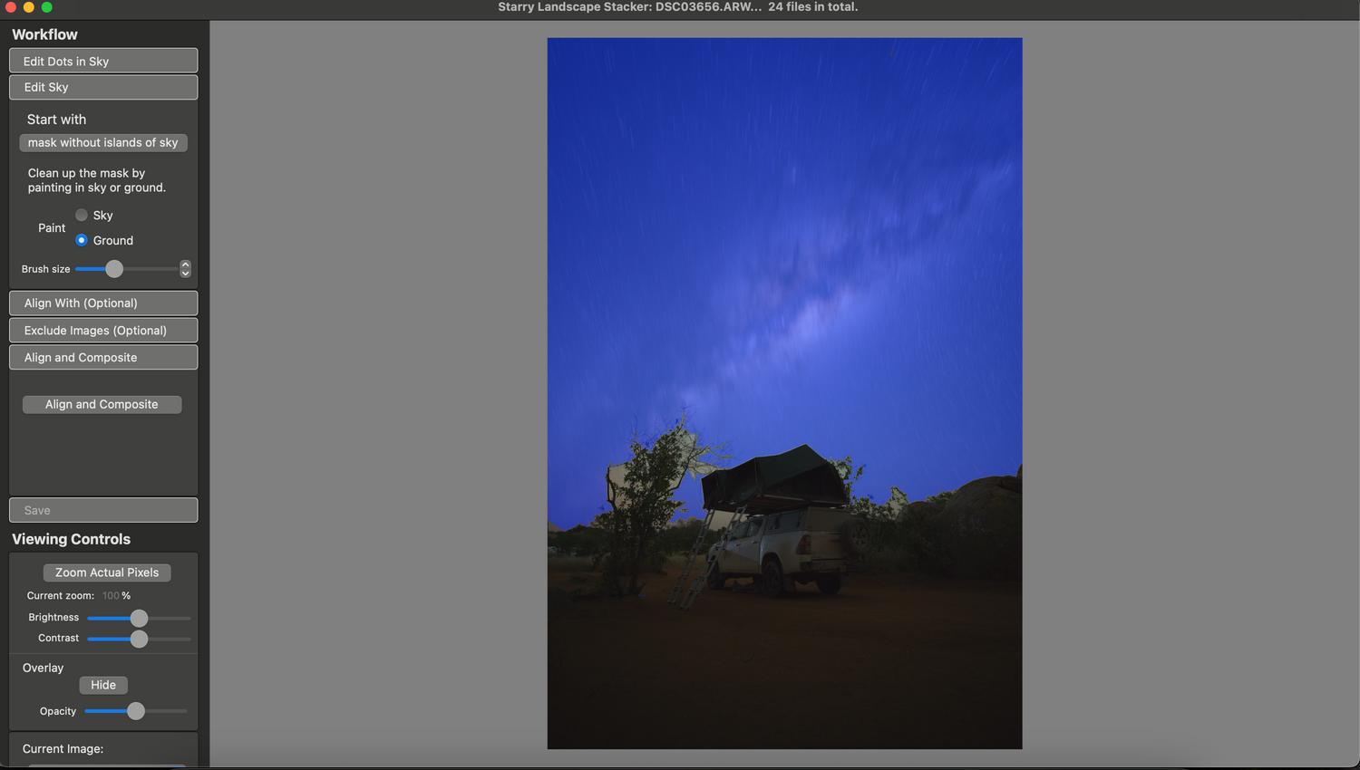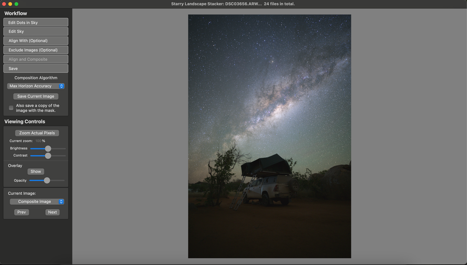 - Starry Landscape Stacker (macOS) or Sequator (Windows)