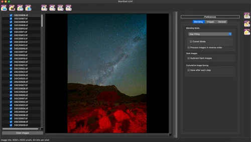 Open StarStaX and load your exported TIFF files.